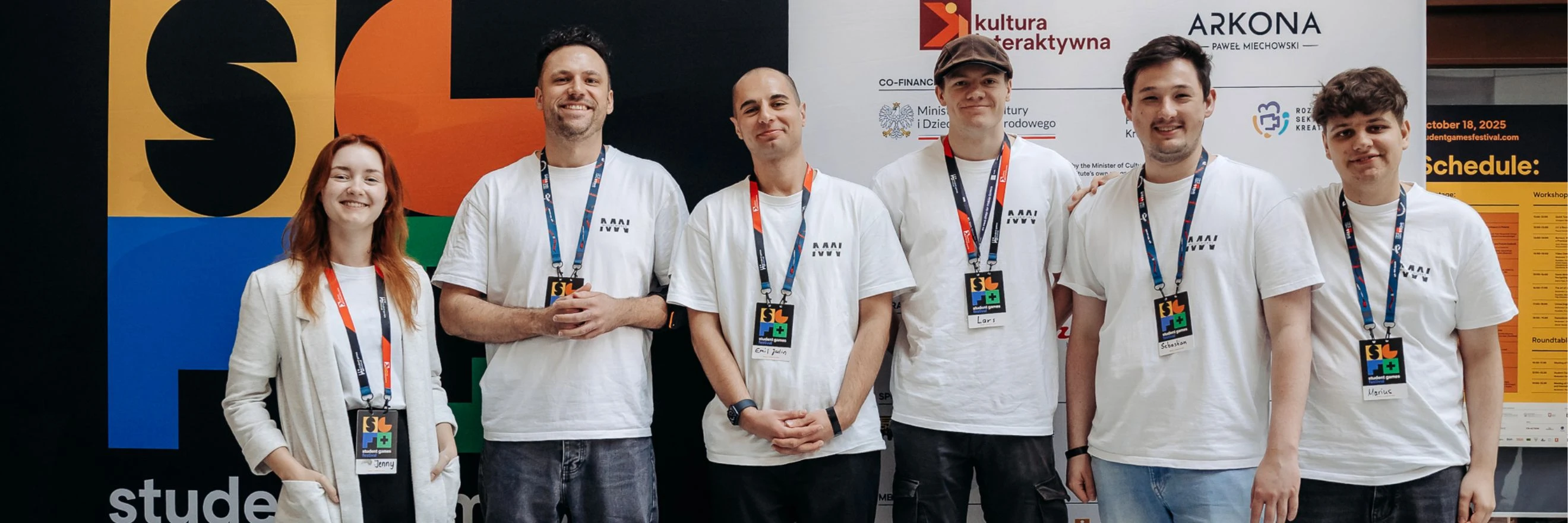 Wir sind ein sechsköpfiges Studententeam, bestehend aus zwei Programmierern (Lars Gohde, Marius Maucher), einem Game Designer (Sebastian Dreschmann), einem Producer (Kevin Bruno) sowie zwei Artists (Emil Judin und Jennifer Bell).